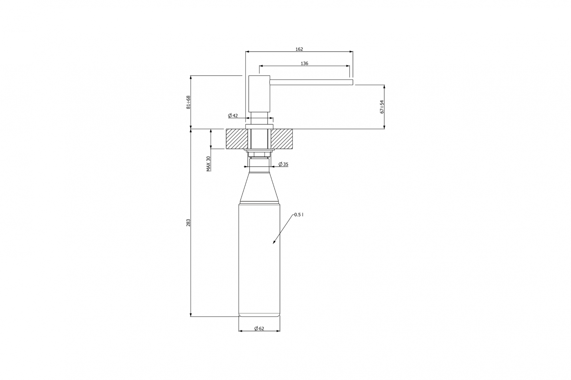 - Đường kính lỗ lắp đặt: 27 mm