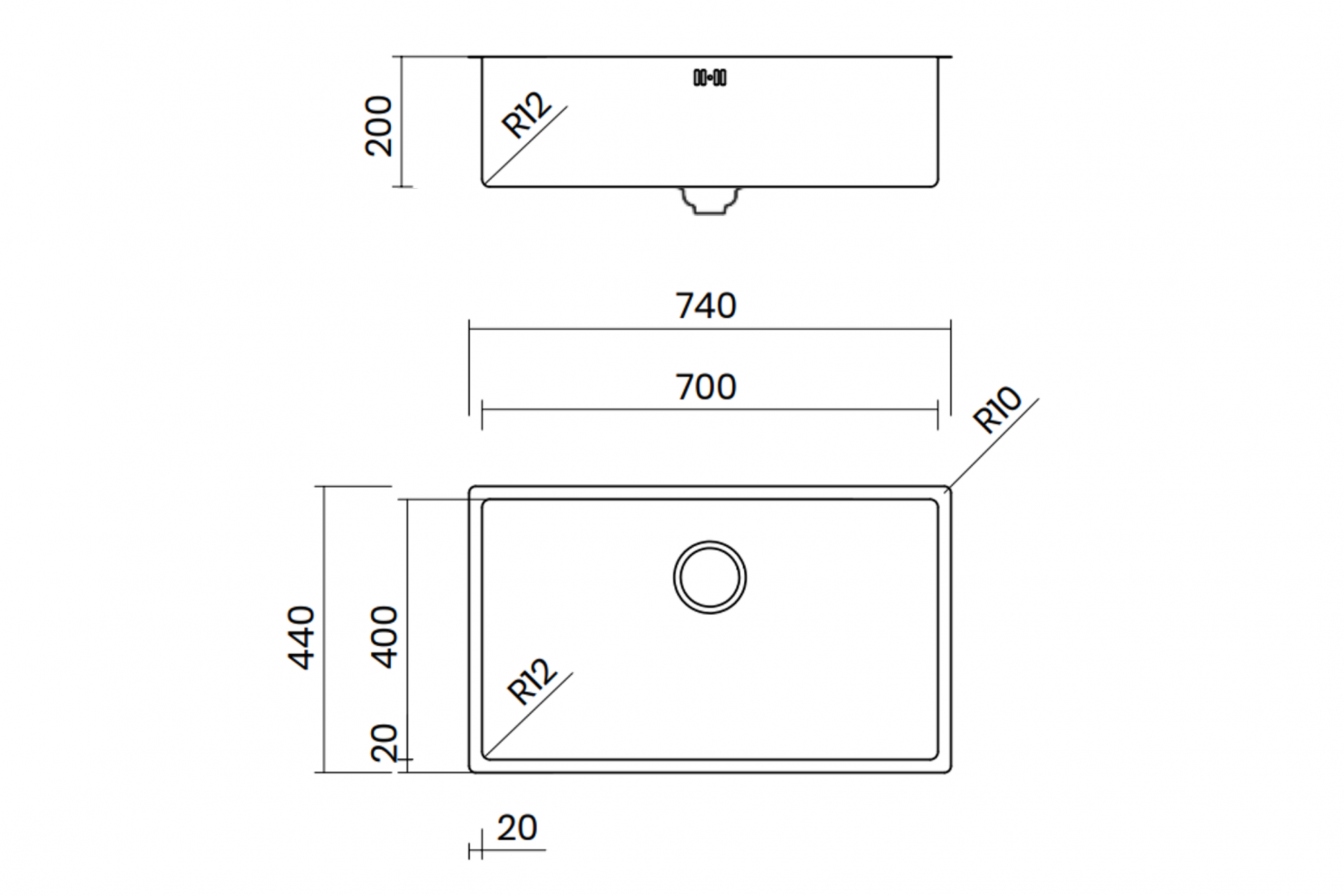 - Chiều sâu chậu: 200 mm